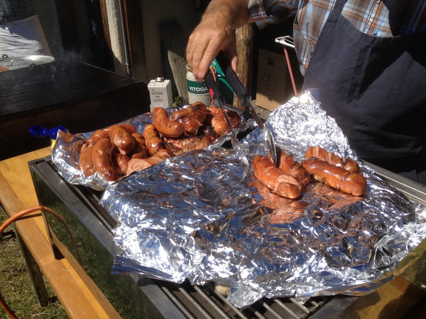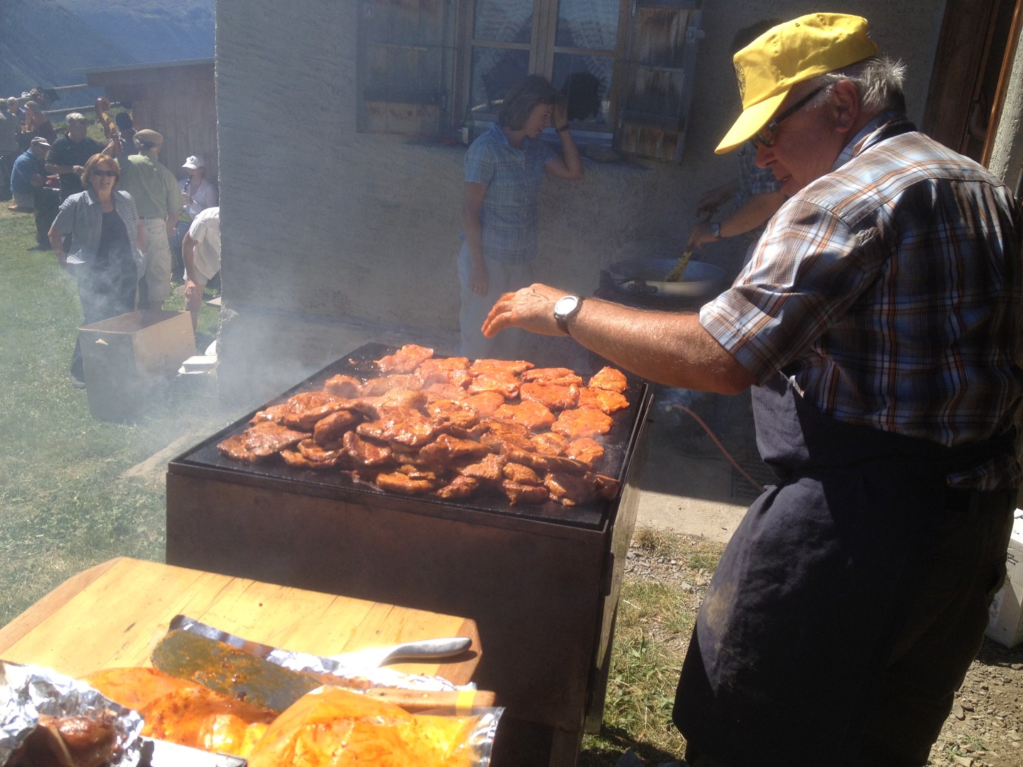 Eigeladen haben bereits zum 3. Mal die Gemeinde Zuoz sowie der FSZ (Förderverein Sesselbahnen Zuoz). Der Gemeinde Präsident Flurin Wieser begrüsste herzlich die Gästeschar und unterstrich dies glaubhaft als aktiver Risotto con funghi- Koch unterstützt durch Hans Berner und damit dieser auch mal essen konnte, Karl Pedrini am Grill.